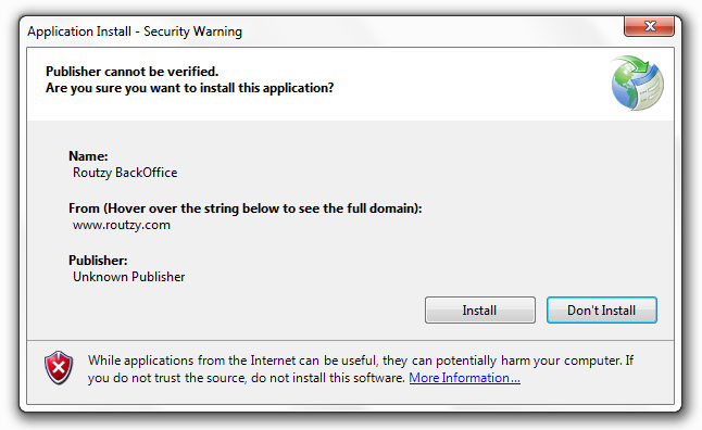 When prompted CLICK “Install” to install Routzy BackOffice on your computer.